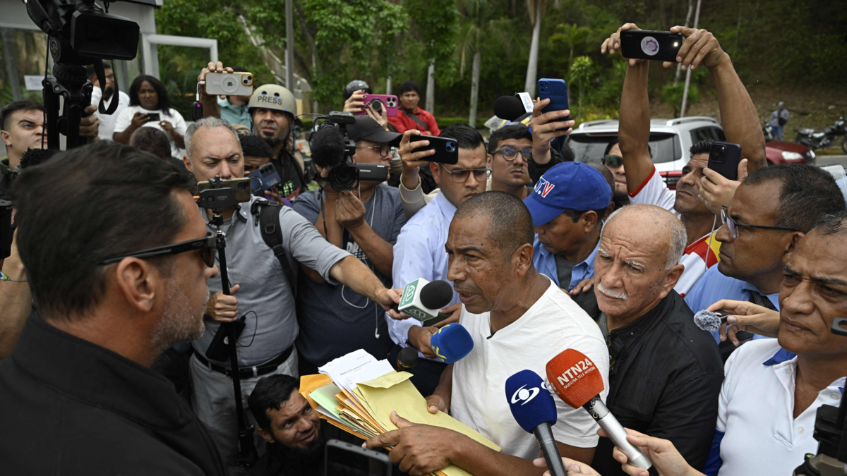Los manifestantes entregaron un documento en la sede diplomática en Caracas en el que también piden la liberación de presos políticos.